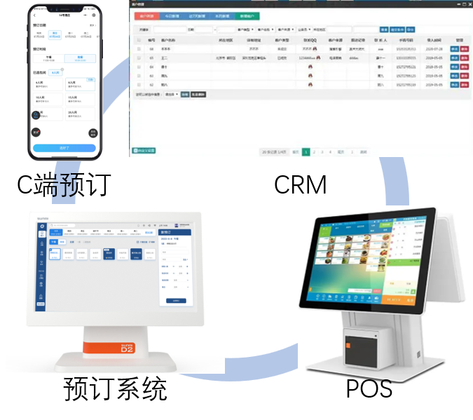 数据中心打通C端服务平台智能接单,连接CRM会员管理一一匹配会员信息,数据库级别无缝对接收银软件。。