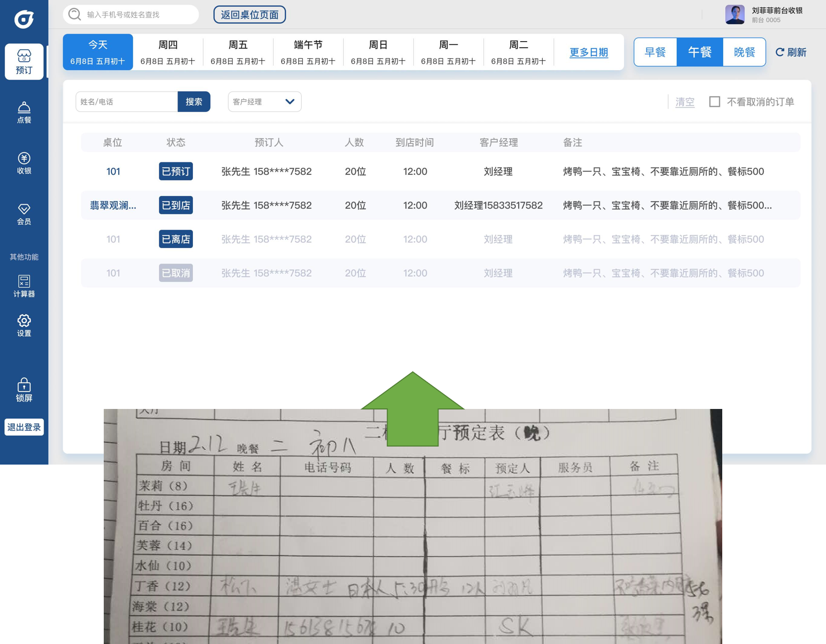 电子预订本是餐厅各种营销管理的基础,同步预订数据是一切管理实施的基石
