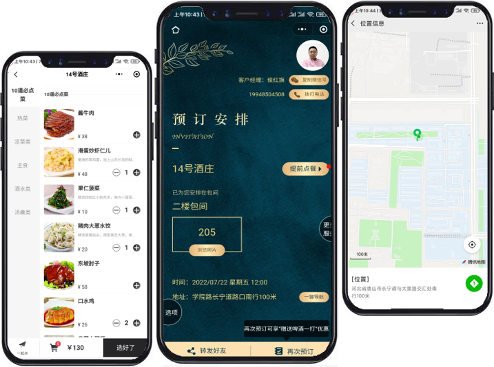 - 电子邀请函展示包间环境、餐厅导航信息,客人可以一键导航到餐厅;