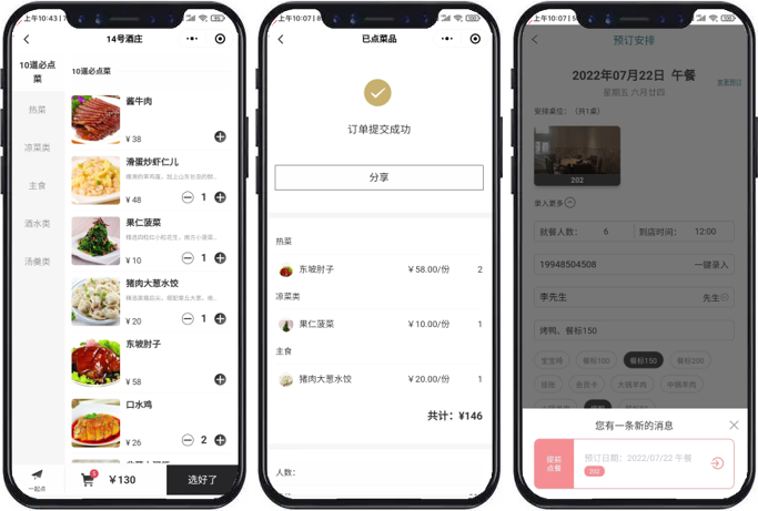 通过预订安排,客户提前点餐,方便客人,节约商家人力